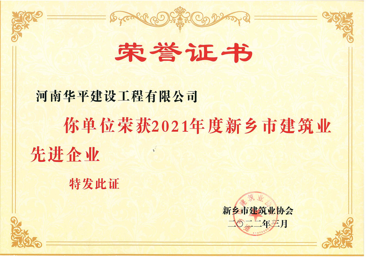 > » 2021年度新乡市建筑业先进企业