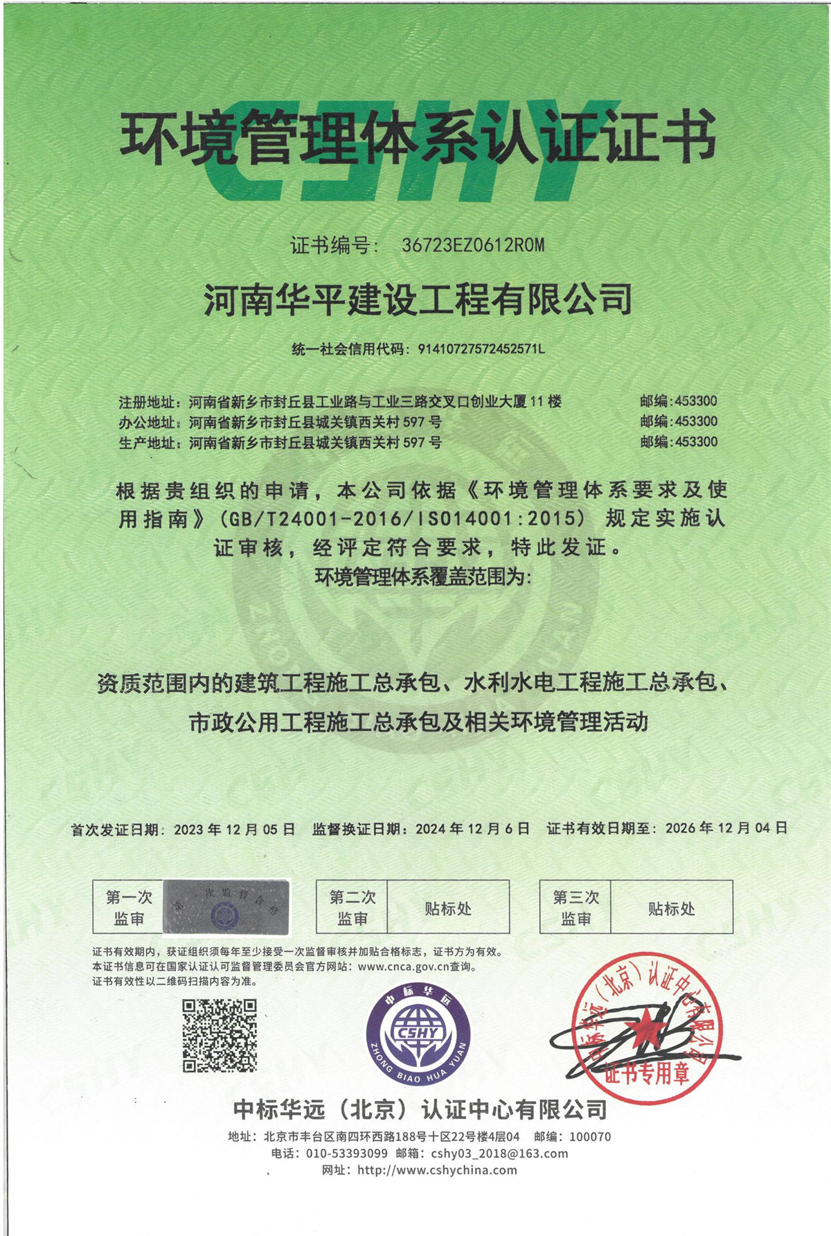 > » 环境管理体系认证证书