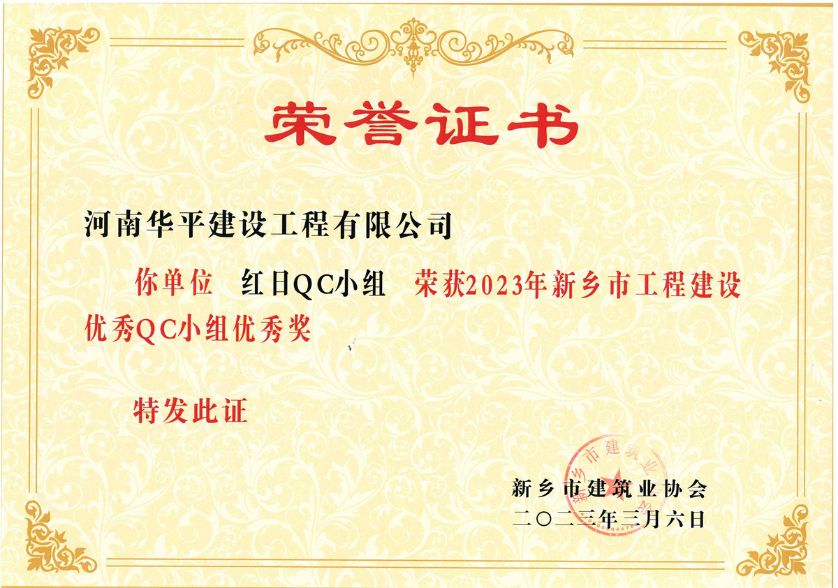 > » 2023年新乡市工程建设优秀QC小组优秀奖